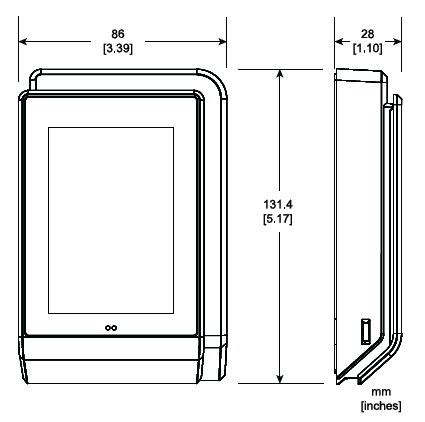 Dimensions: (H × W × D) 131.4 × 86.0× 28.0 mm (5.17 × 3.39 × 1.10”)