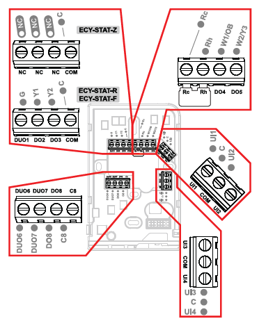 Device power (Rc and Rh) and all other loads on the ECY-STAT should not exceed 4A total consumption.