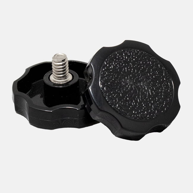Large black grip spin knobs for tilt bracket used for Air-Row F-Series destratification fans. (Set of 2)